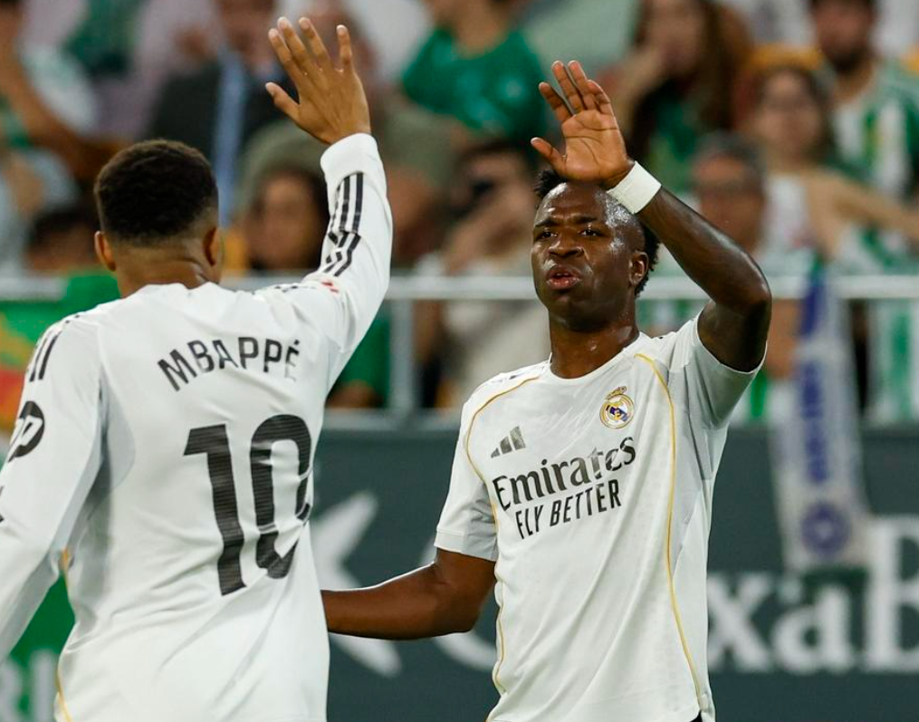 皇马排出了442阵型。维尼修斯和姆巴佩搭档双前锋。蒂亚戈-皮塔奇、巴尔韦德、贝林厄姆和卜拉欣-迪亚斯4中场联袂出击。费兰-门迪、赫伊森、吕迪格和亚历山大-阿诺德4后卫首发出战。卢宁担任首发门将。贡萨洛-加西亚、卡马文加、马斯坦托诺和阿森西奥坐在替补席待命。