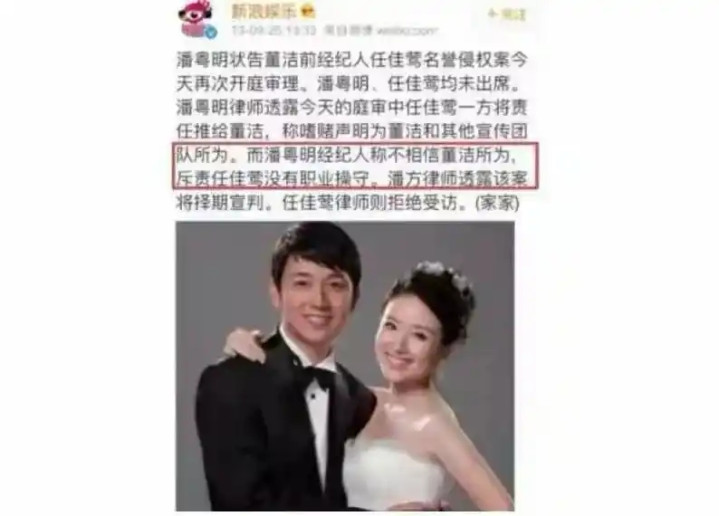 潘粤明的应对方式只有一招:发律师函,逐条反驳,起诉经纪人任佳莺诽谤,但拒绝公开说董洁一句坏话。