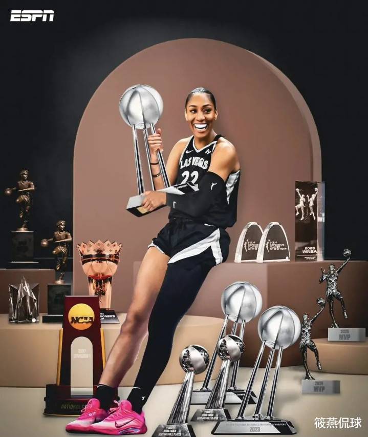 阿贾·威尔逊生涯荣誉无数,可谓是NBA届的乔丹+魔兽霍华德的综合体,她曾四次夺得MVP,三次WNBA总冠军、两次FMVP、三次DPOY、两次得分王、五次盖帽王、七次全明星、六次最佳阵容、五次最佳防守阵容、一次最佳新秀、两次奥运金牌。