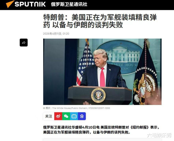俄罗斯卫星通讯社报道,特朗普还表示,美军军舰正在重新装弹,装载更先进武器弹药;如果谈判失败,这将非常有效地打击伊朗。