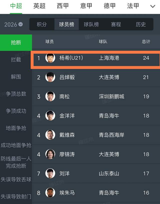 第三个,杨希就是海港今年最超值的引援,甚至不输新引进的外援安佩姆和让克劳德,今天他不仅打进关键进球,而且还有2次成功过人和2次造犯规,进攻能力完全开发出来了,而在防守端,他更是以24次抢断,高居中超抢断榜第一,妥妥的中超抢断王。