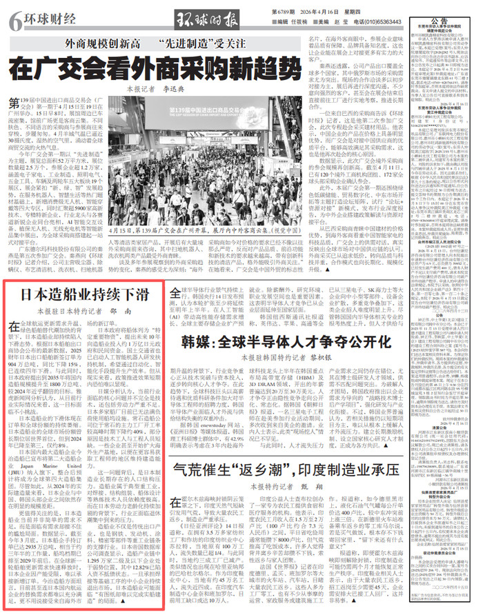 在全球航运更新需求升温、绿色船舶替代潮加快的背景下,日本造船业却持续陷入下滑态势。